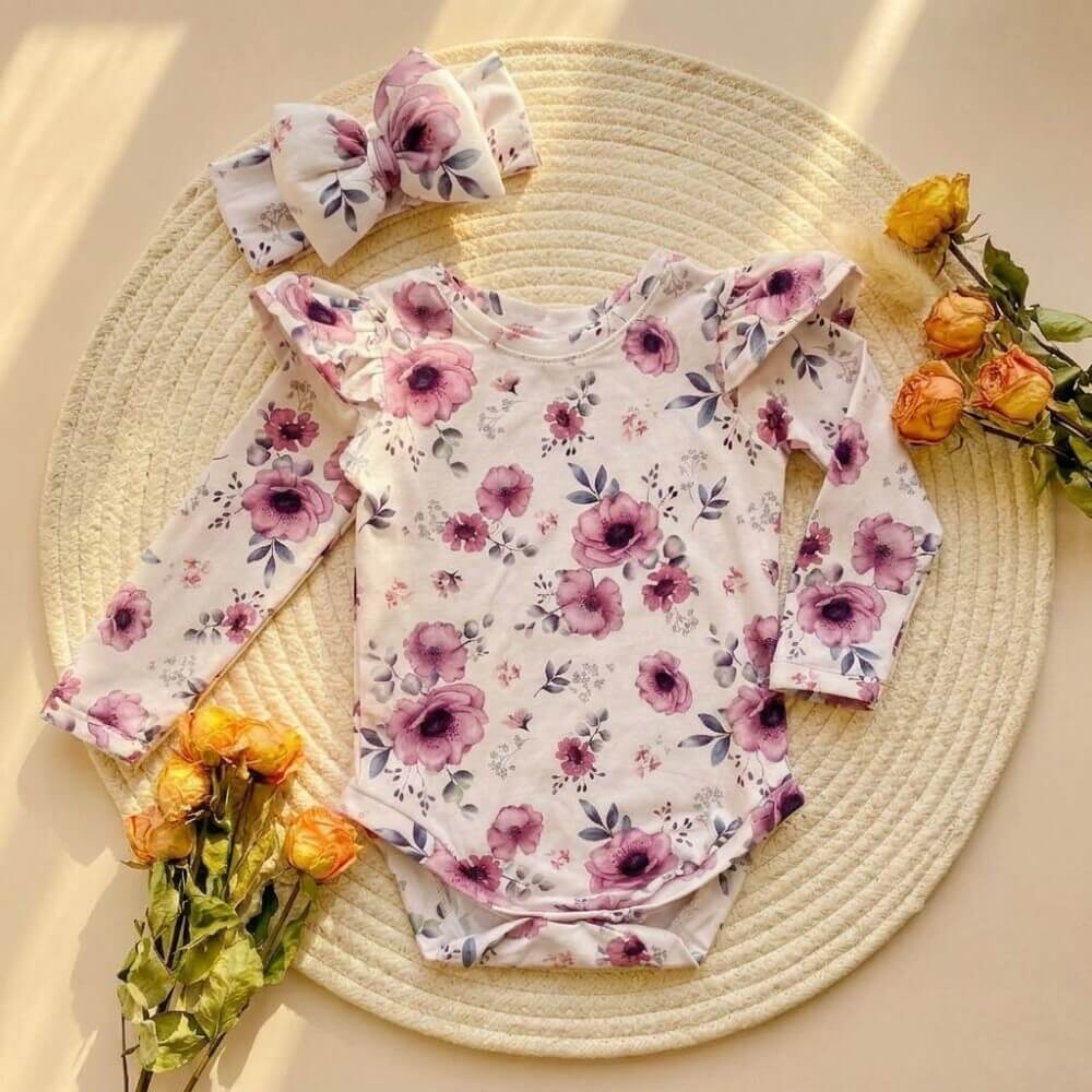 - Ρομαντικό και κομψό βρεφικό φορμάκι με απαλό φλοράλ σχέδιο σε…