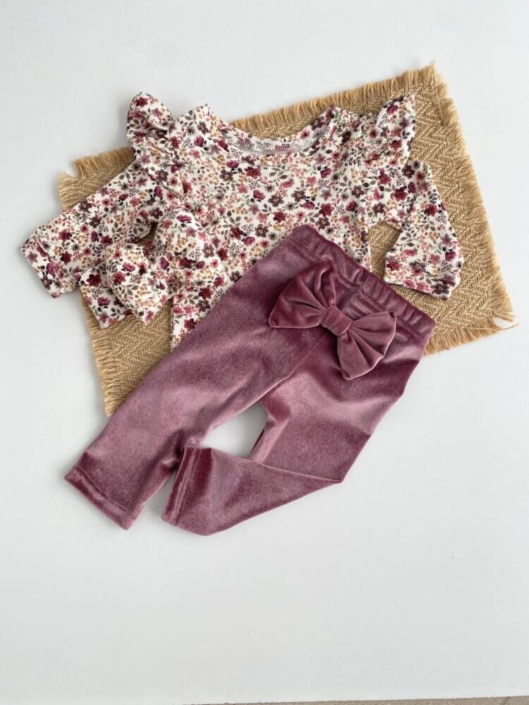 - Χειροποίητο σετ με φλοραλ ριπ κορμακι και παντελόνι απο βελούδινο…