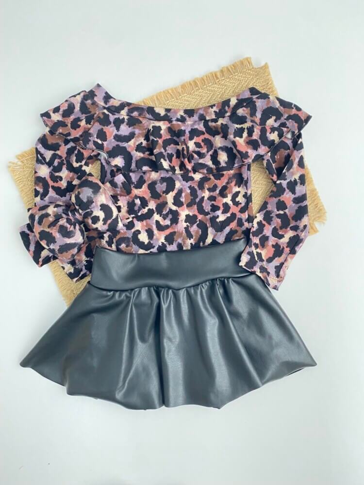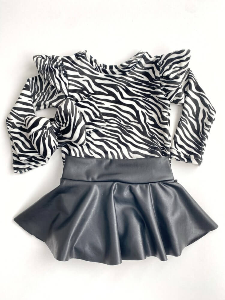 Χειροποίητο Παιδικό Σετ – Κορμάκι Βελούδο & Φούστα Δερματίνη