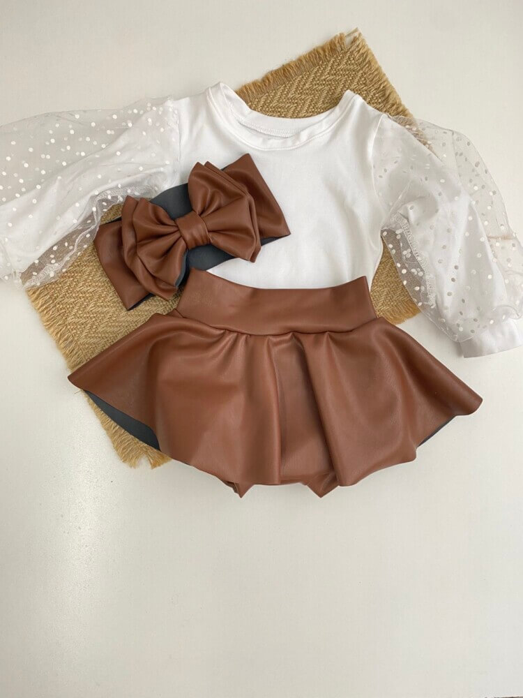 Σετ κορμάκι με τούλι και καφε φούστα δερματίνη