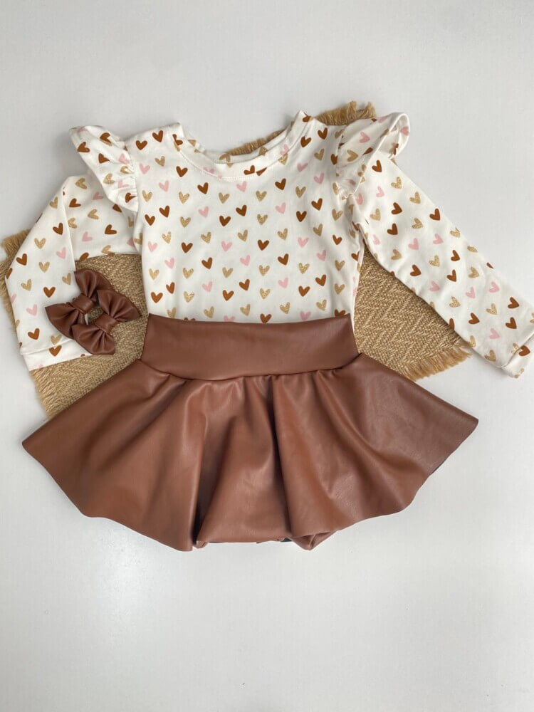 Σετ κορμακι καρδούλες με δερμάτινη φούστα