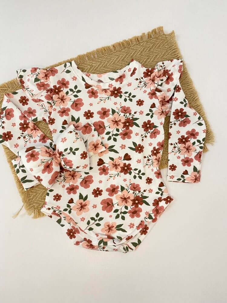 - ✨ χειροποίητο κορμάκι με κορδέλα, από ελαστικό φλοραλ ύφασμα. Κομψότητα…