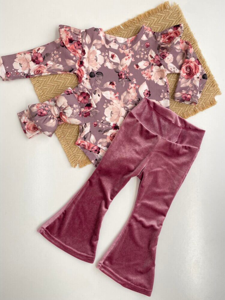 - Χειροποίητο σετ με φλοράλ ύφασμα κορμακι και βελούδο παντελόνι καμπάνα…