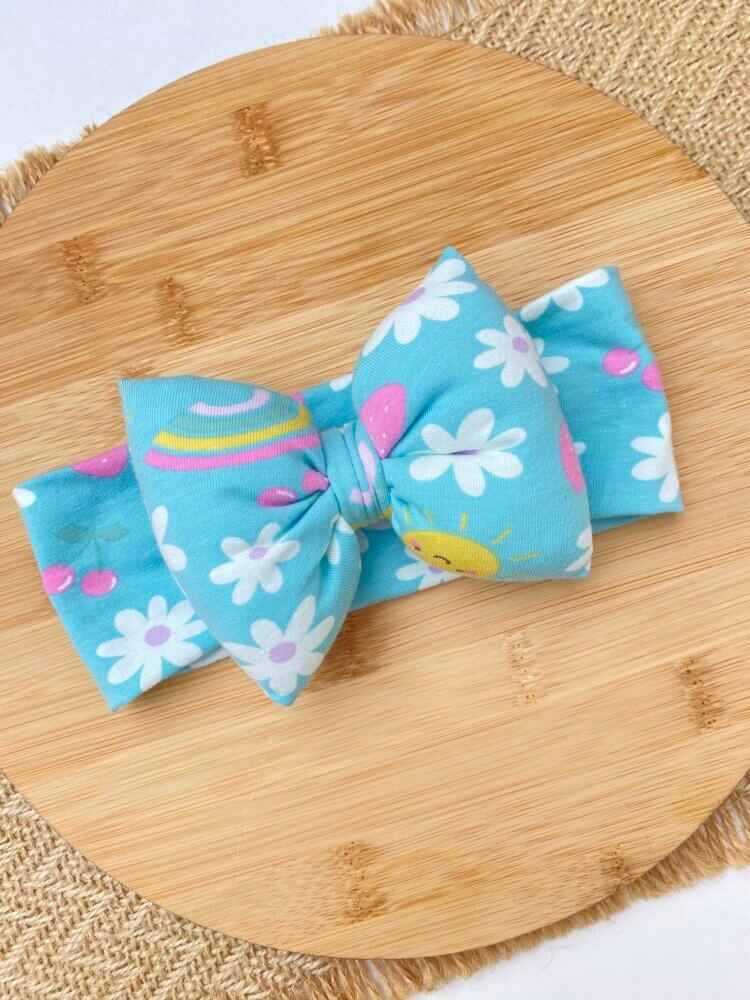 Χαρούμενο παιδικό καλοκαιρινό σετ για κορίτσι με πολύχρωμο μοτίβο από ουράνια τόξα, φράουλες και μαργαρίτες. Ιδανικό για φωτεινές και άνετες εμφανίσεις όλο το καλοκαίρι.