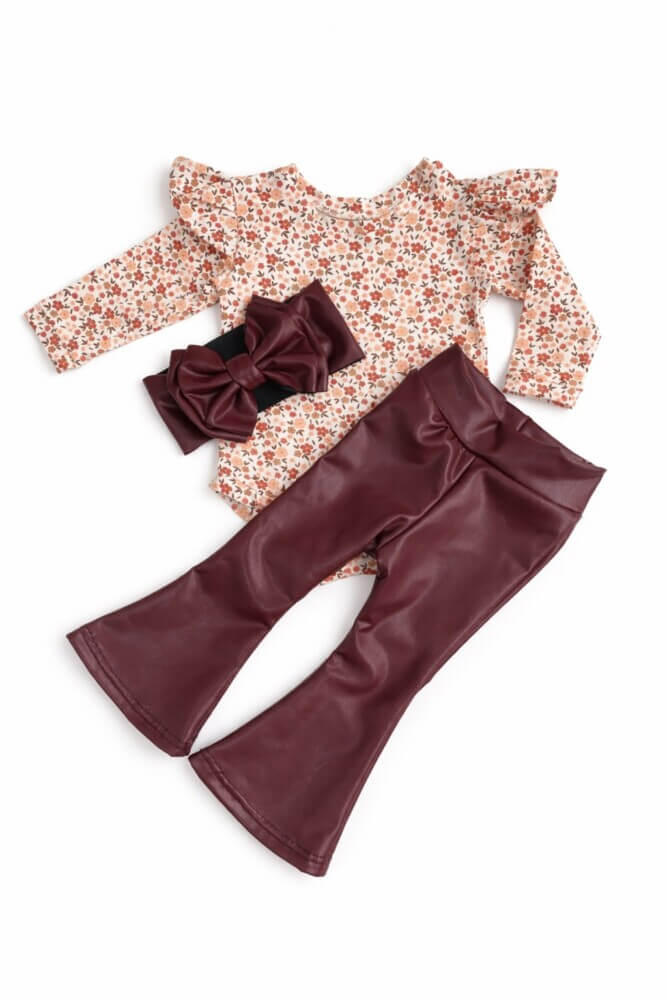 Χειροποίητο σετ με λευκό κορμακι με κέντημα και παντελόνι καμπάνα απο βελούδινο ύφασμα και κορδέλα.